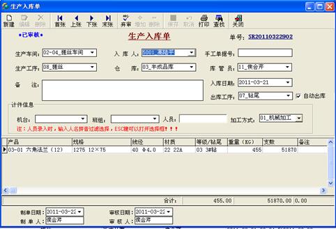 l) 根據(jù)具體業(yè)務(wù)流程,可以設(shè)置相應(yīng)提示功能,例如:冷鐓生產(chǎn)量不能大于訂單減去以前生產(chǎn)量。