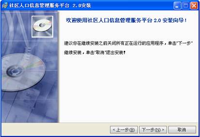 首先,打開安裝盤(或使用U盤中的安裝程序),雙擊安裝盤中的“社區(qū)人口信息管理服務(wù)平臺.exe”文件,如圖3.1 所示。