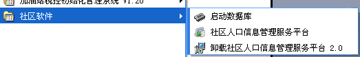 顯示綠色箭頭,即表示啟動成功。您可以打開“程序”文件夾中的“社區(qū)人口信息管理服務(wù)平臺”注冊和使用《平臺》軟件了。