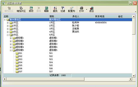 操作人員通過此功能模塊實現(xiàn)社區(qū)結(jié)構(gòu)的建立,本系統(tǒng)中社區(qū)結(jié)構(gòu)分四級管理:社區(qū)、片區(qū)、樓巷、房間,通過此功能模塊可以一級一級的建立起社區(qū)“樹”狀結(jié)構(gòu)。