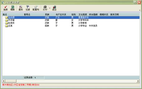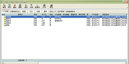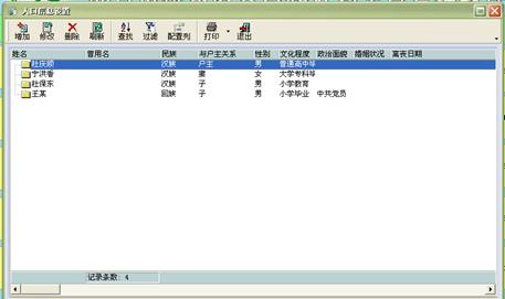 2、實現(xiàn)由信息查詢功能層層反推到“戶信息”功能,系統(tǒng)通過簡單的輸入查詢條件,如:姓名、性別、籍貫、年齡、管理級別等信息方便快捷的查詢出人員信息,通過此人員信息能得到此人員所在“戶”的所有信息。