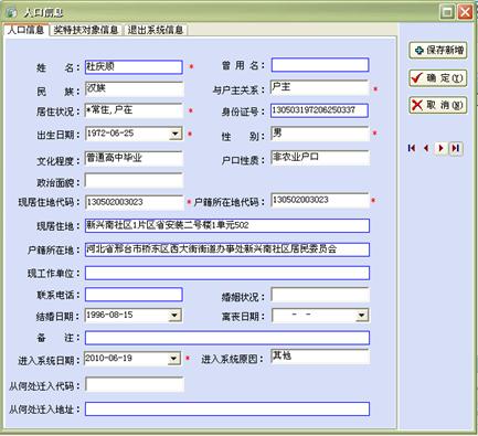(二)人口信息全覆蓋。本《平臺》中包括的人口信息有:常住人口、暫住人口、戶籍所在地為本社區(qū)的人口(戶在人不在的)。