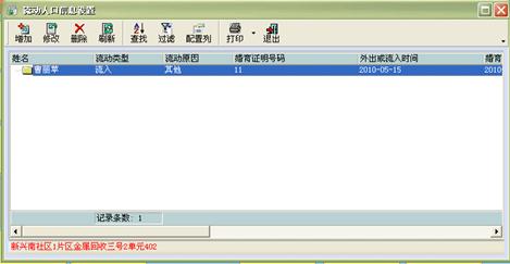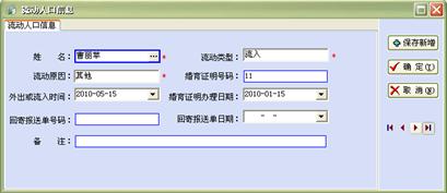 與其他模塊錄入類似、流動人口姓名通過打開人口信息列表窗口來選擇,其他項目直接錄入或選擇。如圖2.22 所示。