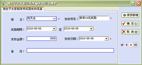 圖2.26 獨生子女享受獎勵發(fā)放信息增加修改窗