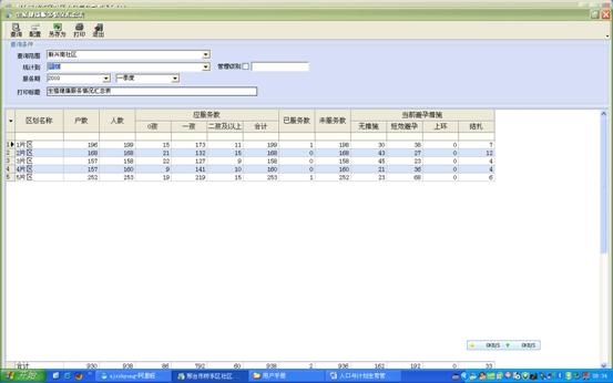(三)實現(xiàn)多種統(tǒng)計報表的實現(xiàn)。系統(tǒng)不僅能根據(jù)操作人員錄入的人戶信息自動生成計劃生育報告單,方便社區(qū)和縣鄉(xiāng)軟件的數(shù)據(jù)上報,還能實現(xiàn)人口信息統(tǒng)計查詢、流動人口信息統(tǒng)計查詢、技術(shù)和藥具使用情況統(tǒng)計查詢,社會撫養(yǎng)費征收情況統(tǒng)計查詢、黨政、行政處罰情況統(tǒng)計查詢等完善的統(tǒng)計查詢報表。