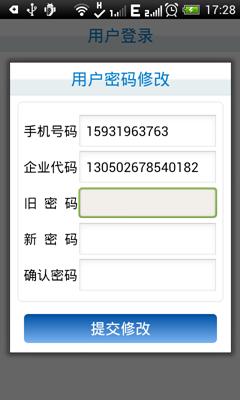 實(shí)現(xiàn),點(diǎn)擊“修改密碼”按鈕后,進(jìn)入修改密碼界面,如圖2.5所示,軟件自動(dòng)記錄登錄的手機(jī)號(hào)和納稅人識(shí)別號(hào),您只需要錄入舊密碼和兩遍新密碼,點(diǎn)擊“提交修改”后,即可修改成您設(shè)置的新密碼。