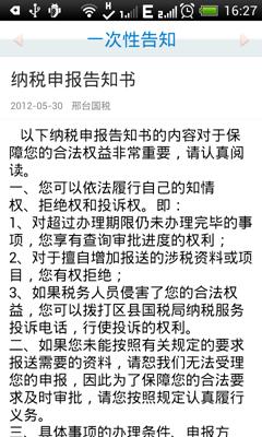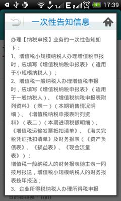 一次性告知涉及納稅人辦稅過程中常見的信息,通過一次性告知的形式,簡單明了的提供給納稅人,辦理某項(xiàng)業(yè)務(wù)的權(quán)利和義務(wù)及所要攜帶的資料文件、流程信息。如圖2.30所示。