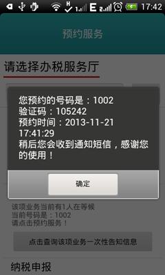 當(dāng)您需要預(yù)約某項(xiàng)業(yè)務(wù)時(shí),點(diǎn)擊某項(xiàng)業(yè)務(wù)就可以預(yù)約該項(xiàng)業(yè)務(wù),預(yù)約成功后,顯示預(yù)約號(hào)碼,驗(yàn)證碼,預(yù)約時(shí)間信息,如圖2.10所示。